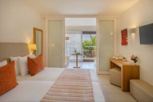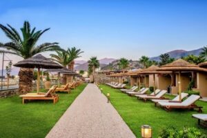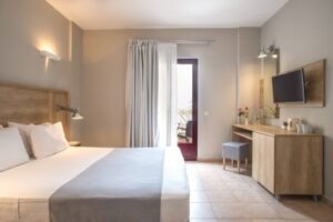 Ubytování v klimatizovaných pokojích zahrnuje bezplatné kabelové připojení k internetu, satelitní TV a lednici. Při příjezdu každý host obdrží zdarma láhev vína, ovoce a vodu. Stravování je možné formou polopenze s bohatým bufetem. V hlavní restauraci jsou podávány krétské speciality, zatímco v resortové restauraci si hosté mohou vychutnat středomořská jídla včetně dietních a vegetariánských variant à la carte. Program all-inclusive je možné dokoupit.