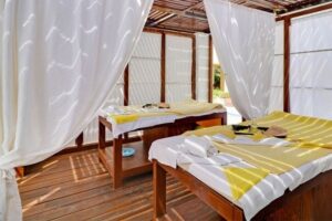 Písečná pláž je přímo u hotelu, ale doporučuje se koupací obuv. Lehátka a slunečníky na pláži jsou za poplatek, ale u bazénu jsou zdarma. Ručníky jsou k dispozici za zálohu.