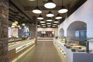 Hotel nabízí 223 pokojů, které jsou vybaveny klimatizací, televizí, telefonem a minibarem. Některé pokoje mají balkon s výhledem na moře, přičemž ostatní poskytují výhled do okolí. Stravování je zajištěno formou all inclusive, zahrnující snídaně, obědy a večeře formou bufetu, s širokým výběrem nápojů a občerstvení během dne.