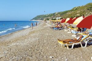 Příjemná písčitá pláž s pozvolným vstupem do moře a sezónní nabídkou vodních sportů se nachází pouhých 100 metrů od resortu, s přístupem přes podchod. Pro hosty jsou k dispozici lehátka a slunečníky zdarma, poskytující ideální prostředí pro relaxaci a pobyt u moře. Atrium Platinum Resort Hotel & Spa tak nabízí dokonalý luxusní pobyt na Rhodosu s širokým spektrem vysoce kvalitních služeb a vybavením.