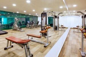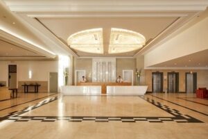 Hotel disponuje bohatým vybavením, včetně vstupní haly s 24hodinovou recepcí, směnárnou, lobby barem, třemi restauracemi (řecká, italská, čínská), konferenční místností, bazénem s dětským brouzdalištěm a sportovními zařízeními. V zahradě naleznete sladkovodní bazén, fitness centrum, tenisový kurt a mnoho dalších možností pro aktivní odpočinek.
