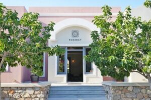 Rose Bay Hotel se nachází v letovisku Kamari na ostrově Santorini, přibližně 500 metrů od centra, kde hosté mohou objevovat restaurace, bary a obchody. Supermarket je v blízkosti hotelu, pouhých cca 50 metrů. Město Fira, hlavní město ostrova, je vzdáleno asi 8 km, a letiště v Santorini je dostupné přibližně po 10 km.