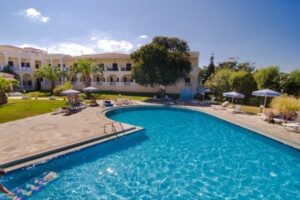 Hotel Palmyra, který prošel renovací v roce 2004, se nachází v tradičním stylu ostrovní architektury a je obklopen krásnou udržovanou zahradou s bazénem. Jeho poloha, cca 250 m od pláže a v blízkosti letoviska Argassi, poskytuje hostům snadný přístup k moři a různým zařízením. Hotelové vybavení zahrnuje recepci s 24hodinovým provozem, restauraci, bary, bazény s lehátky a slunečníky, hernu a sportovní vybavení. Pro děti je k dispozici dětský bazén a venkovní hřiště.